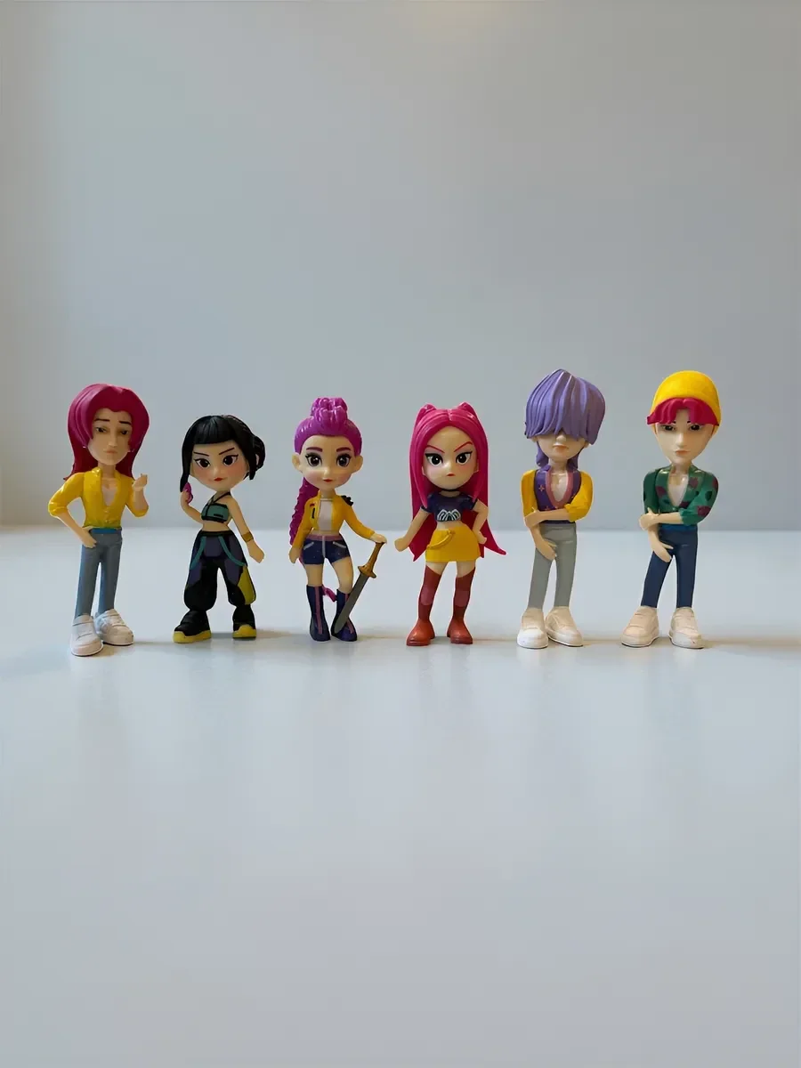 Coleccion de 6 figuras de la pelicula Guerreras K- Pop junto con los Sajaboys